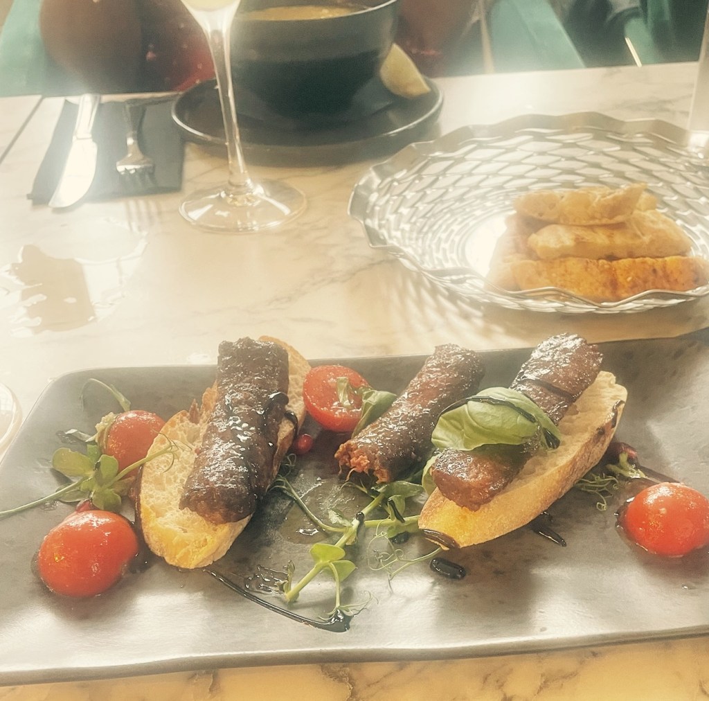 I looked at the starters we received with incredulity — there wasn’t a morsel or hint of festive sprinklings. Other than the claim that the sausages were Turkish — does that mean the sausages have Turkish nationality, or simply that they’re made from the bird Turkey? I’m still none the wiser. The main course and dessert followed pretty much in the same vein. As a self‑confessed addict of anything sweet, the cheesecake was the highlight. I still felt short‑changed — this wasn’t a festive meal with cousins, just a meal with cousins.